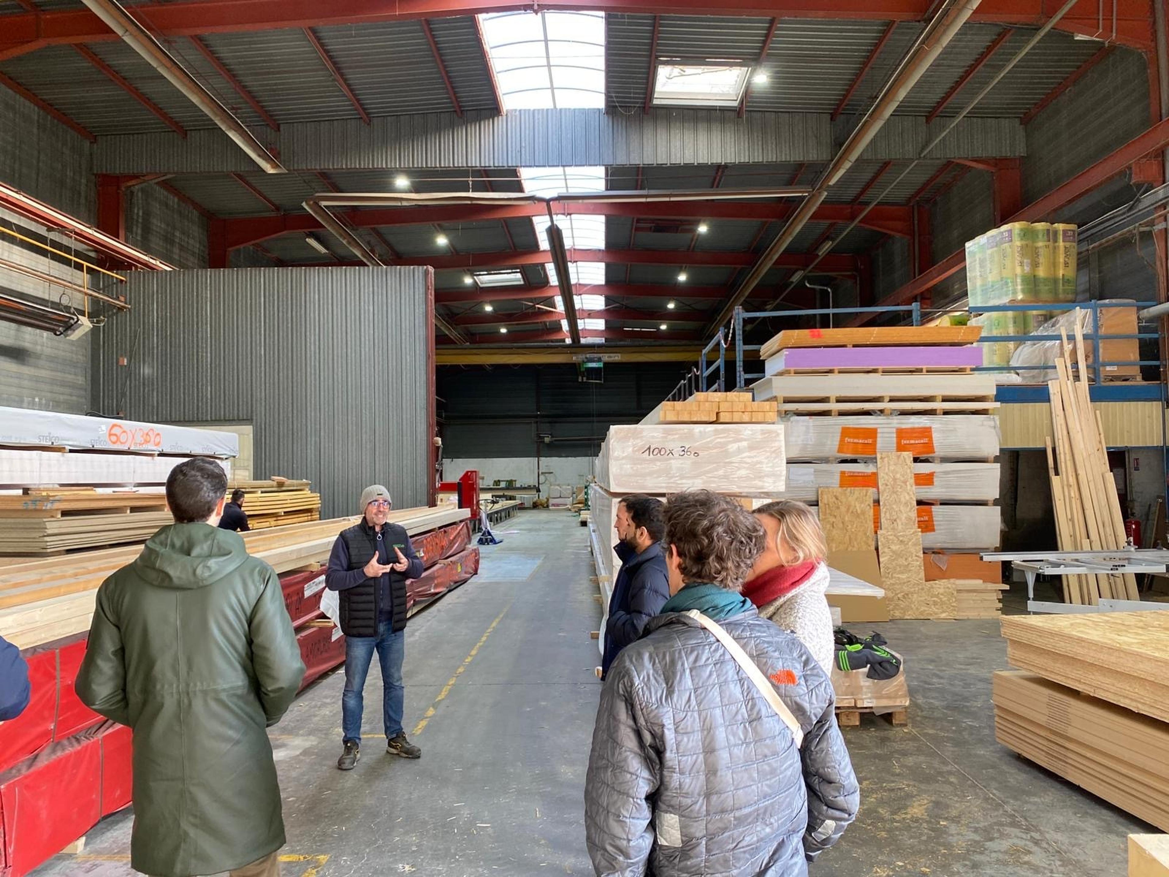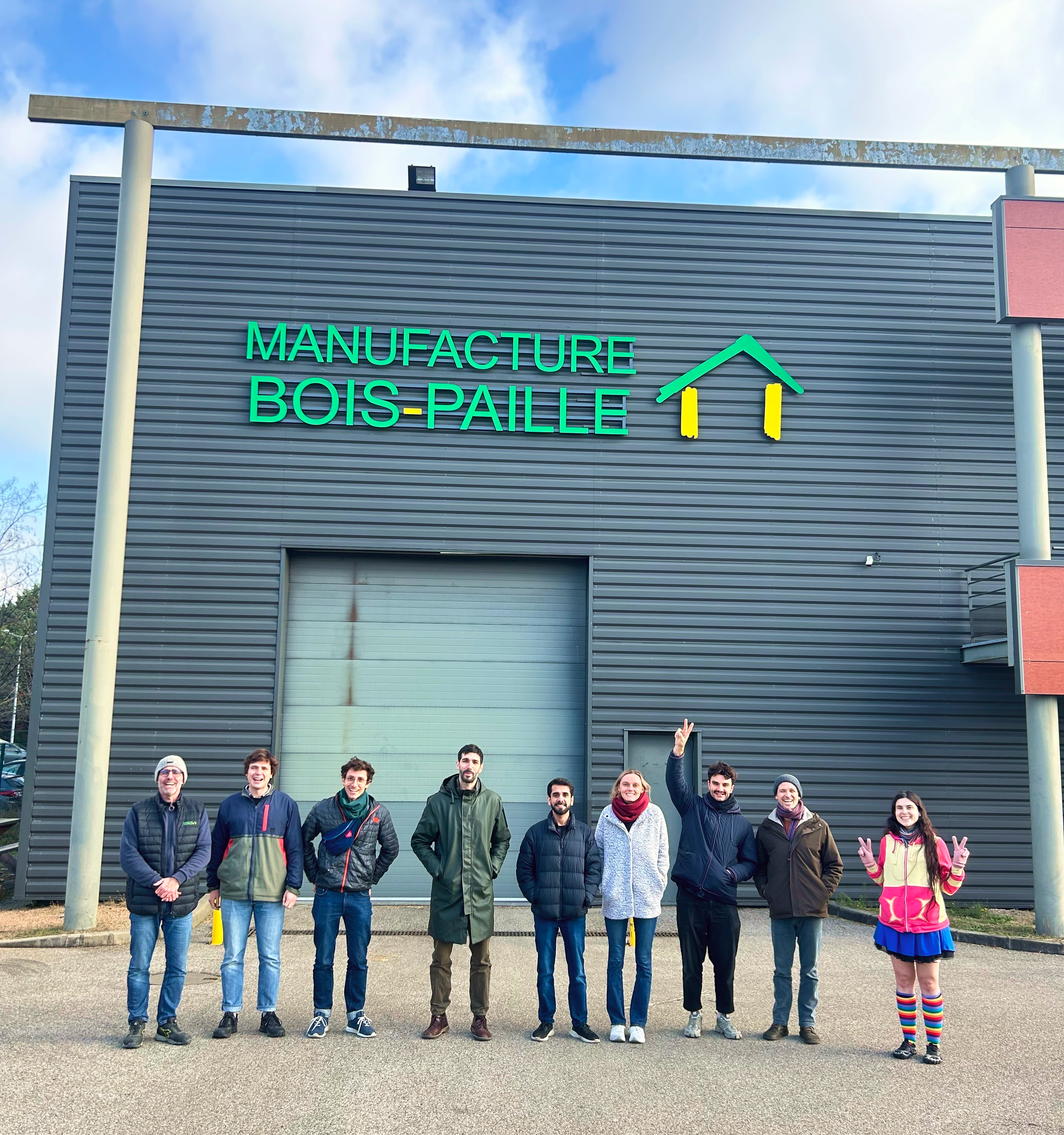 Clement (in the grey jacket) visiting Manufacture Bois-Paille, which produces biobased construction materials.